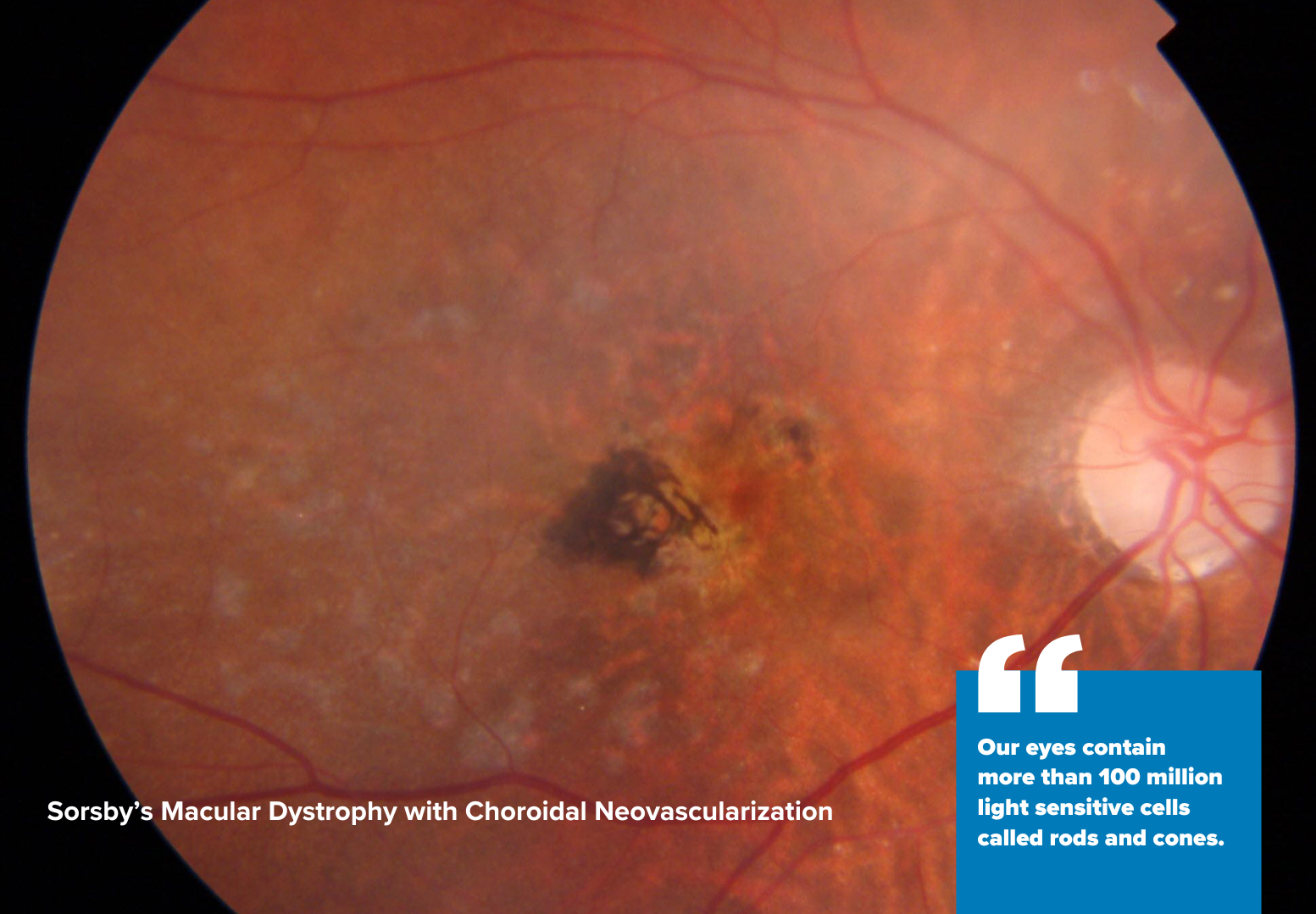 The macula is like the center of the cameraβs film, and it helps you see details, like when youβre reading a book or looking at someoneβs face. But in Stargardt macular dystrophy, something is not working properly with the macula. Itβs similar to if the film in a camera got messed up, and the pictures turned out blurry or dark.